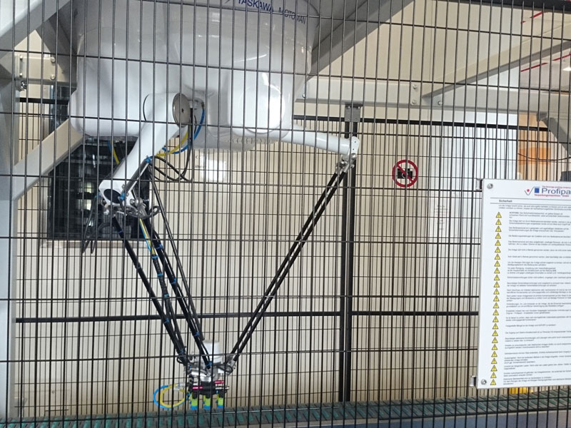 Mit dem Pick & Place Roboter "Profipick" werden Produkte von einem Transportband "aufgepickt" und sortiert und ausgerichtet abgelegt. Die Produkterkennung erfolgt dabei über ein vorgeschaltetes Kamerasystem, welches dem Delta-Roboter die genaue Position der Produkte übergibt. Das Ablegen der Produkte kann auf Transportbänder oder direkt in Umverpackungen erfolgen.